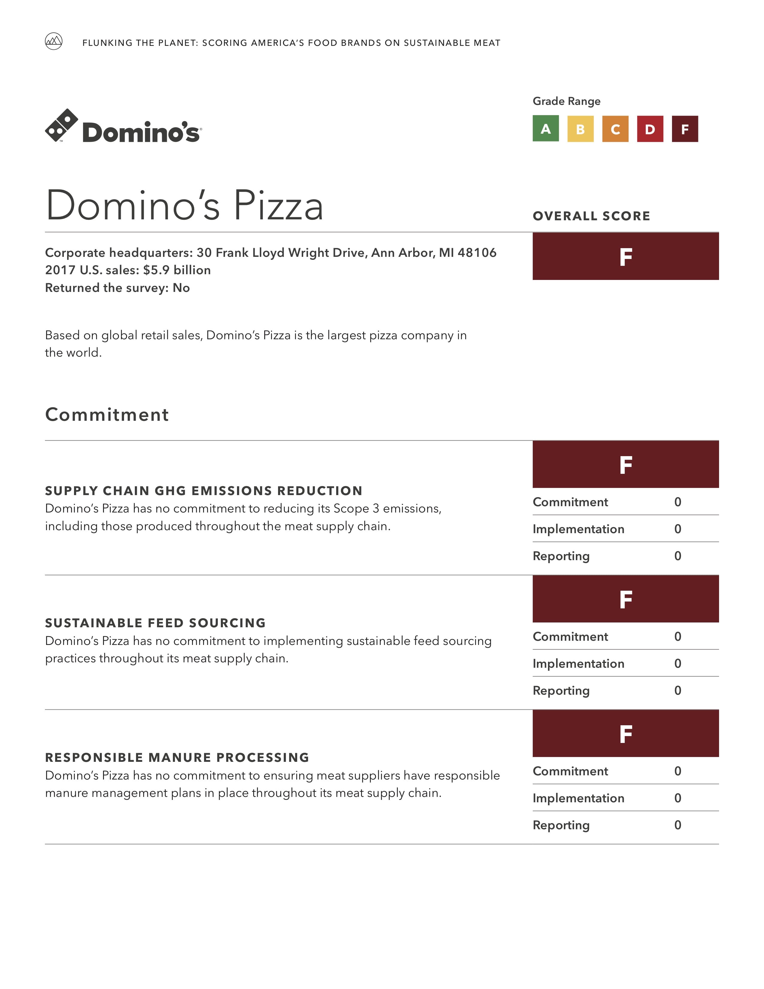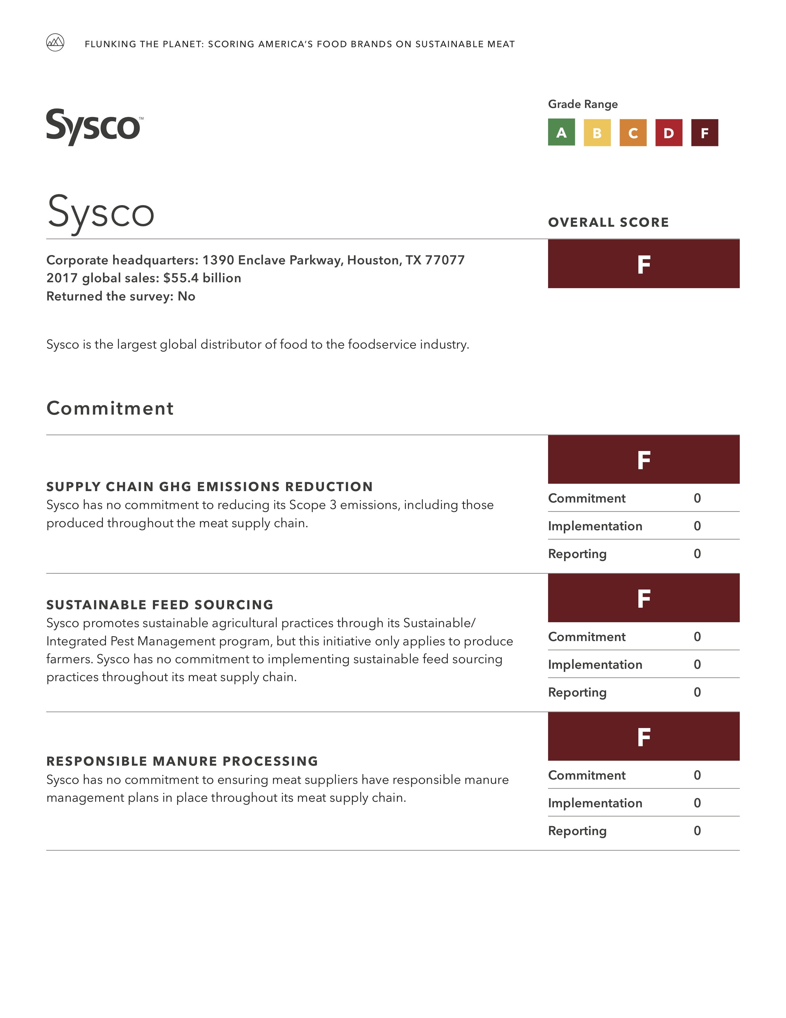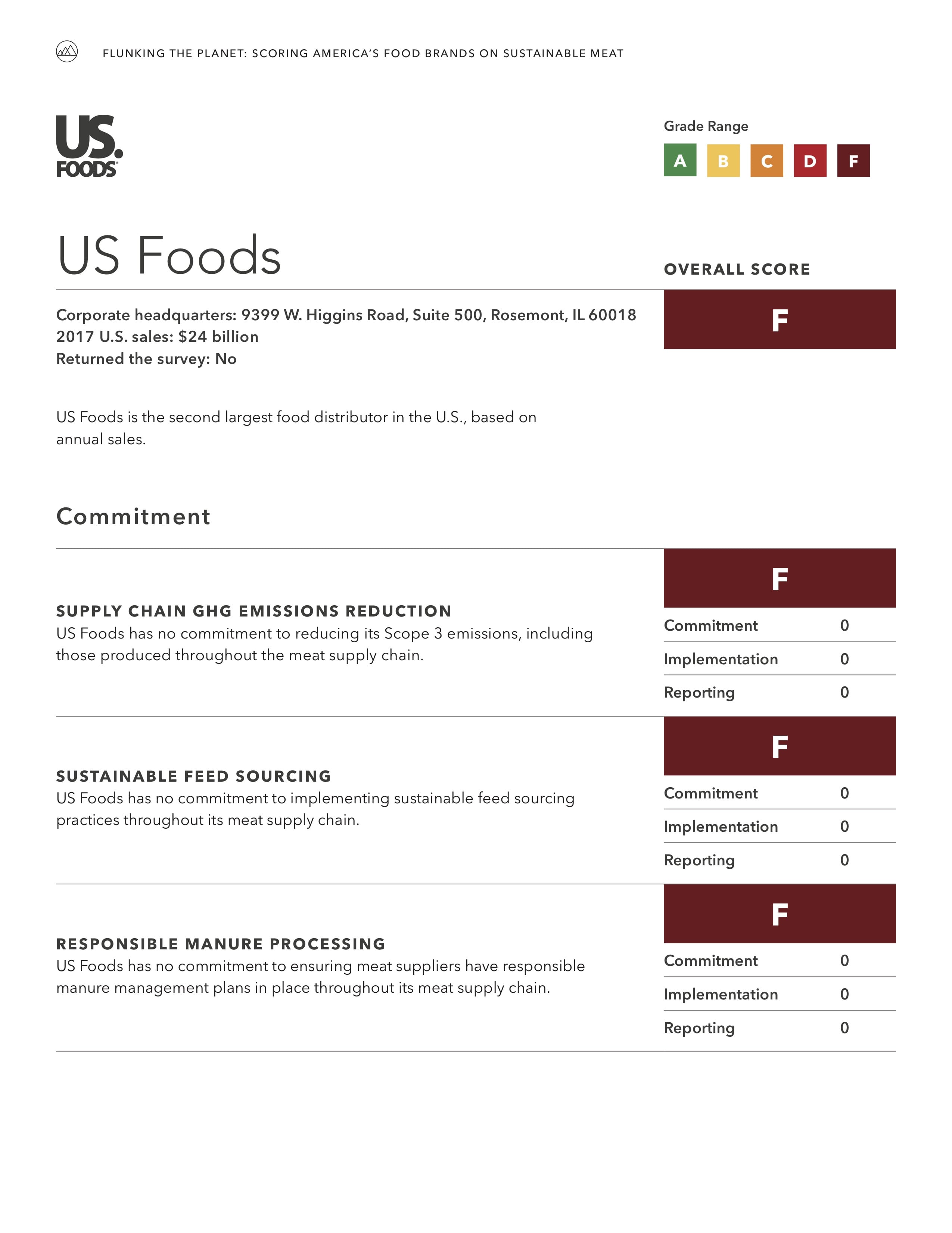 Read the Report   View Company Profiles   Recommendations  A new report from Mighty Earth found widespread failure across the food industry to address the environmental impacts of the meat supply chain, and provides recommendations for how companies can improve. “Flunking the Planet: Scoring America’s Food Companies on Sustainable Meat” found that none of the 23 major brands surveyed — representing the largest fast food, grocery, and food service companies in the U.S. — have policies in place to require even minimal environmental protections from meat suppliers. The scorecard evaluates environmental standards related to feed sourcing, manure management, and greenhouse gas emissions.