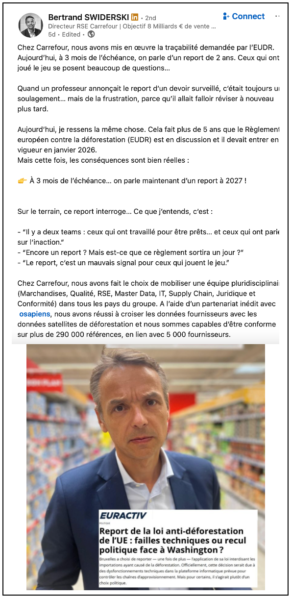 “So yes, we are ready — and we’re certainly not the only ones!Companies have mobilized, invested, and structured their supply chains, so this regulation must be applied as a standard — otherwise, inaction wins.” (Translation from French)